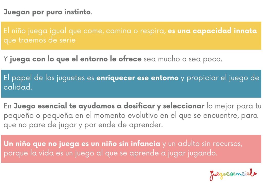 “A través del juego los niños ensayan y practican la vida, en Juego Esencial nos gustan los materiales que sirven a este propósito, porque la vida es un juego al que se aprende a jugar JUGANDO”.