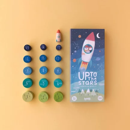 El reto, apilar las 15 piezas de madera siguiendo el orden e interiorizando los conceptos de mayor a menor. Al final, y manteniendo el equilibrio, dejaremos el cohete.