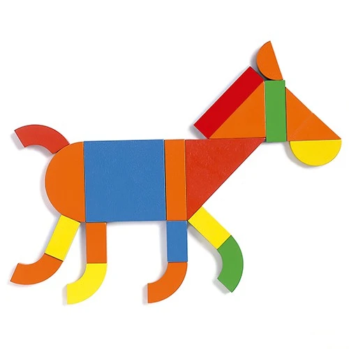 Maletín con figuras geométricas magnéticas de madera. Un juego muy versátil y con un rango de edad amplio. Vienen 42 formas de madera geométricas y 24 diseños tipo tangram para formar figuras.